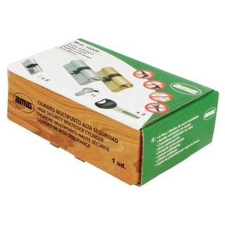 High security brass cylinder with 6 pins and 15 mm cam.Double clutch.1 antidrill pin in body and 2 in plug.Anti snap bar in SS.Anti pick.Stainless steel springs.Coded cylinder with property card for key duplication.Includes 5 keys with plastc head.Used on wooden doors.