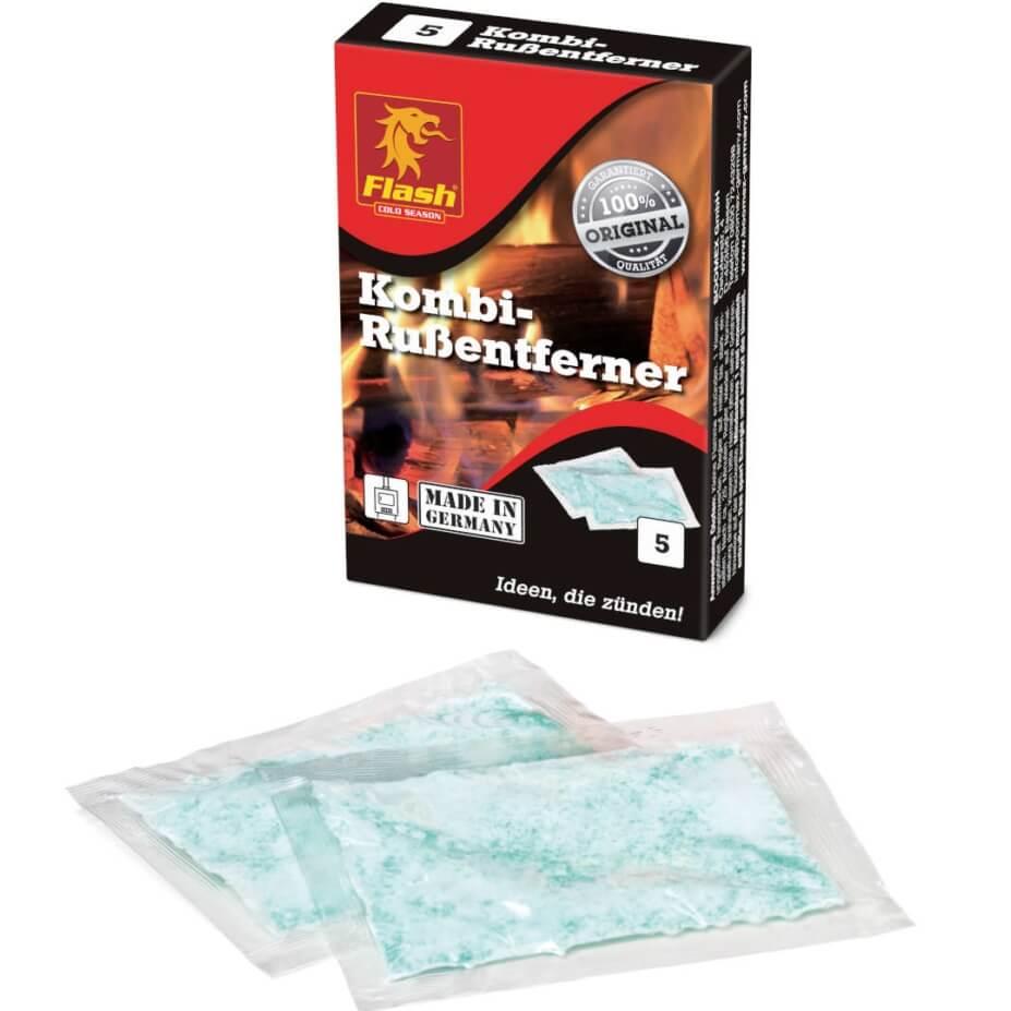 Soot remover powder for coal-burning and oil stoves.