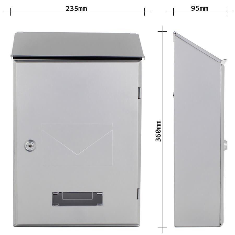 Mailbox suitable for Outdoor & Indoor spaces.Includes a place for writing a name, glass to check the presence of forms, rubbers to prevent noise when closing and a plate to hold the mail.Made of galvanized sheet metal with electrostatic paint.Screws and wall plugs for wall mounting are included.It has a security lock with a spare key.