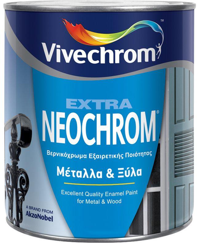 Το EXTRA NEOCHROM είναι γυαλιστερό βερνικόχρωμα μεγάλης αντοχής, που διατηρεί την στιλπνότητα και τις αποχρώσεις του αναλλοίωτες προσφέροντας προστασία και ομορφιά που διαρκεί. Είναι κατάλληλο για όλες τις εσωτερικές ή εξωτερικές μεταλλικές και ξύλινες επιφάνειες. Σχηματίζει ένα σκληρό και ταυτόχρονα ελαστικό τελείωμα, με μεγάλες αντοχές στις δυσμενείς καιρικές συνθήκες, στην ατμοσφαιρική ρύπανση και στο πλύσιμο. ∆ουλεύεται μαλακά, απλώνει θαυμάσια και έχει μεγάλη καλυπτικότητα.