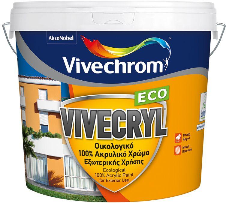 VIVECRYL ECO is an acrylic matt paint for exterior use with outstanding resistance to adverse weather conditions and long-lasting durability. It is suitable for every kind of new or old surface such as plaster, concrete and wooden surf aces. It has excellent working properties with great hiding power and strong adhesion. It provides a water resistant surface with high vapour permeability. It does not contribute to the growth and spread of fire.
