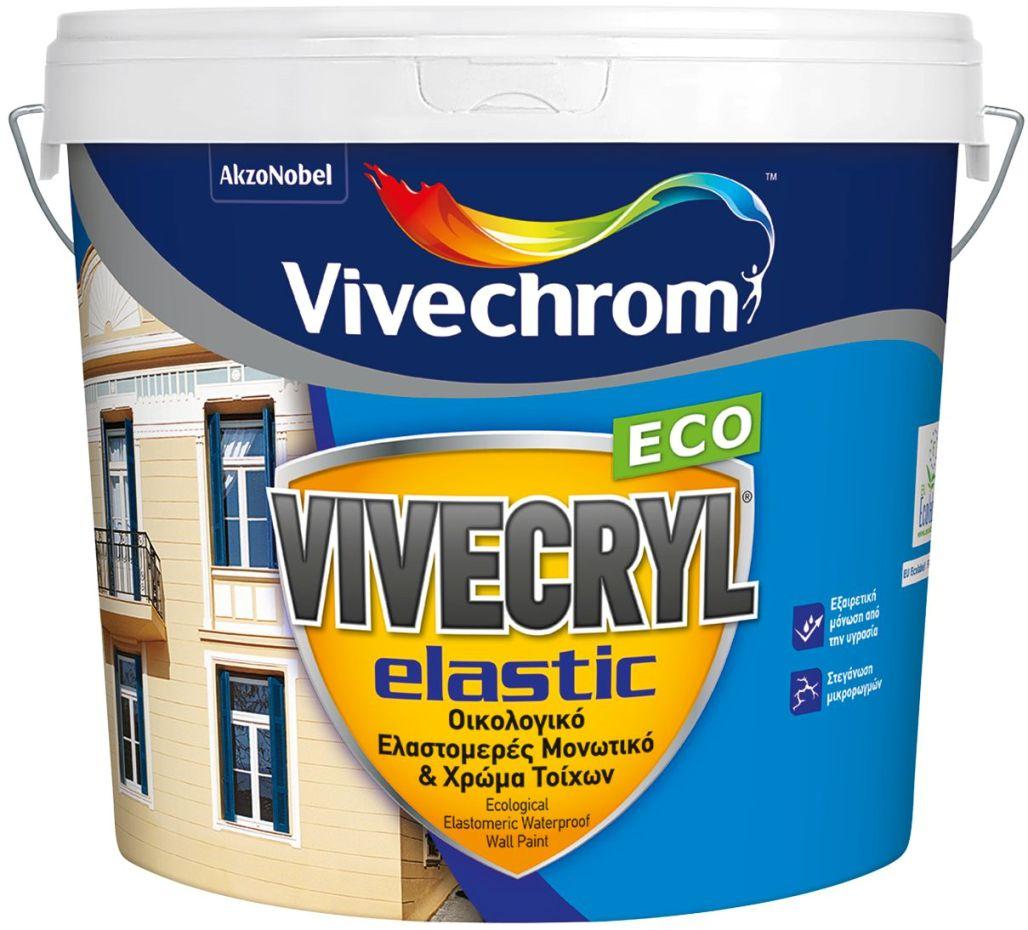 VIVECRYL ELASTIC ECO is an elastomeric insulating paint that perfectly waterproofs the exterior walls from humidity. It covers completely all the existing hairlines and small cracks and exhibits remarkable resistance to the expansions and contractions of the surface, retaining its elasticity between – 20°C to 80°C. It is suitable for every kind of new or old surface, forming a watertight and extremely durable elastic film. It offers a magnificent matt surface and its shades remain fadeless for many years.